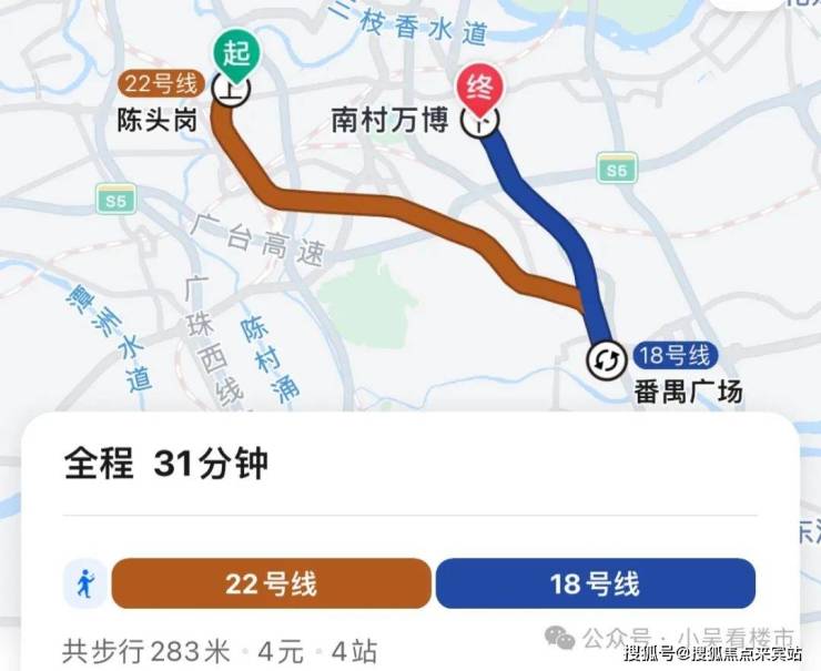 地铁去往万博:小区步行至陈头岗站,乘坐22号线到番禺广场换乘18号线,再到万博仅4个站,全程耗时31分钟左右,北区组团距离地铁较远,去万博时间会多15-20分钟。