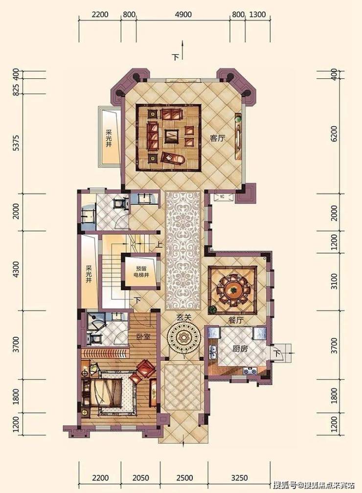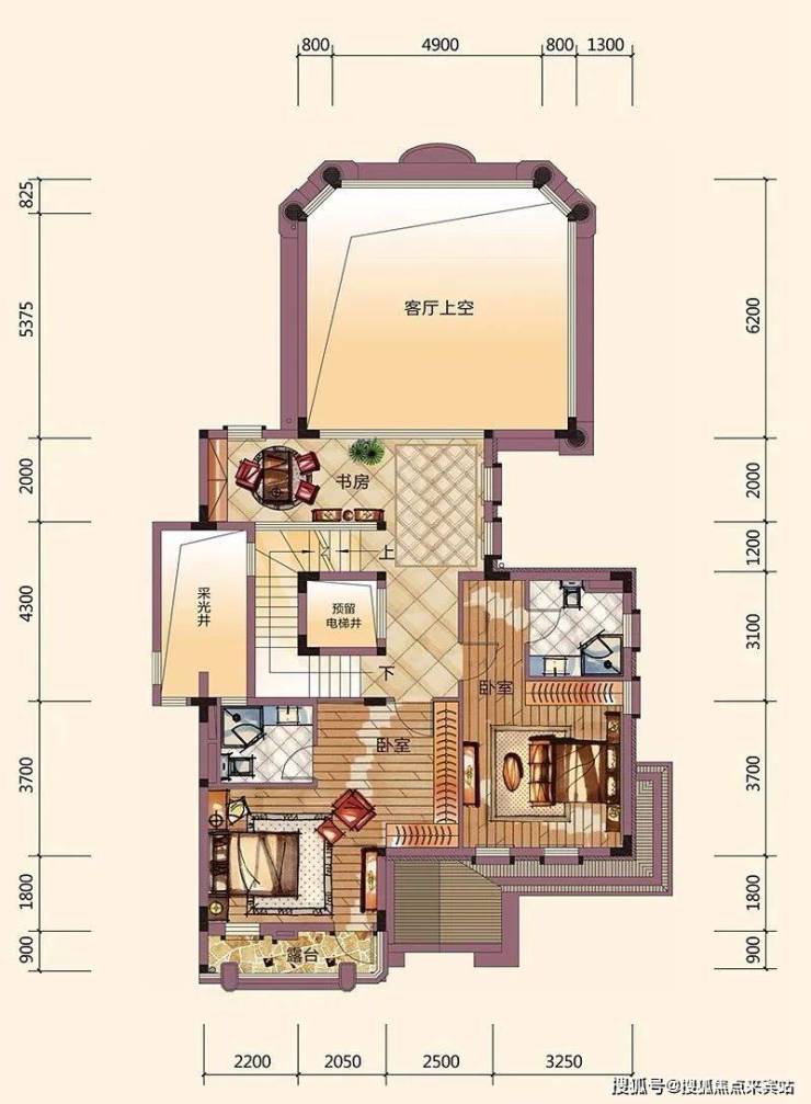 C2户型,联排别墅,5房2厅4卫,三庭院设计,5.4米开间,3.8米高大客厅,煊赫贵族气度。