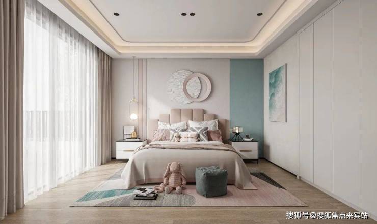女孩房以功能区间的和谐布局,搭配樱粉和浅蓝色调的调染笔触,凸显女孩房的温馨和浪漫的氛围,赋予女孩房一种审美想象的启蒙,烘托孩子的本真、纯粹与美好。