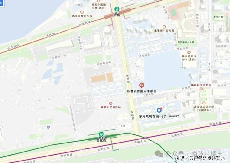 新世界香蜜四季家园位于福田区莲花街道,距离1号线香蜜湖站约500米。距离市民中心约1.4公里,南侧是深圳高尔夫俱乐部,地理位置非常优越。西临香梅路,东侧是合正名园。总占地面积约4.64万㎡,规划总建筑面积约54.35万㎡,分为两个地块开发,03-02-05地块规划为公寓产品的新世界香蜜国际公寓,03-02-06地块则是新世界香蜜四季家园。