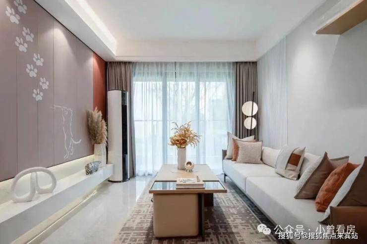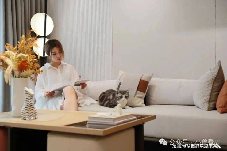 94㎡的猫咪主题样板间,整体风格简约温馨,构建一猫二人三餐四季的生活场景。