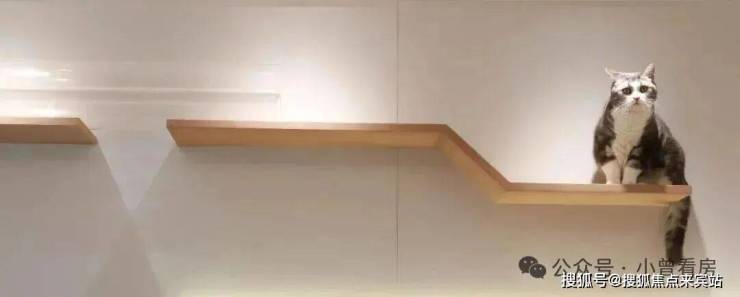 墙上跳板与置物架高低错落,为猫咪提供安全又具有趣味的垂直空间,让这份相互治愈的陪伴,变得更加可爱与温馨。