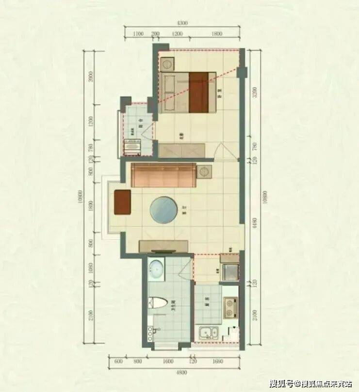 B户型 建筑面积44.88㎡一室一厅一厨一卫