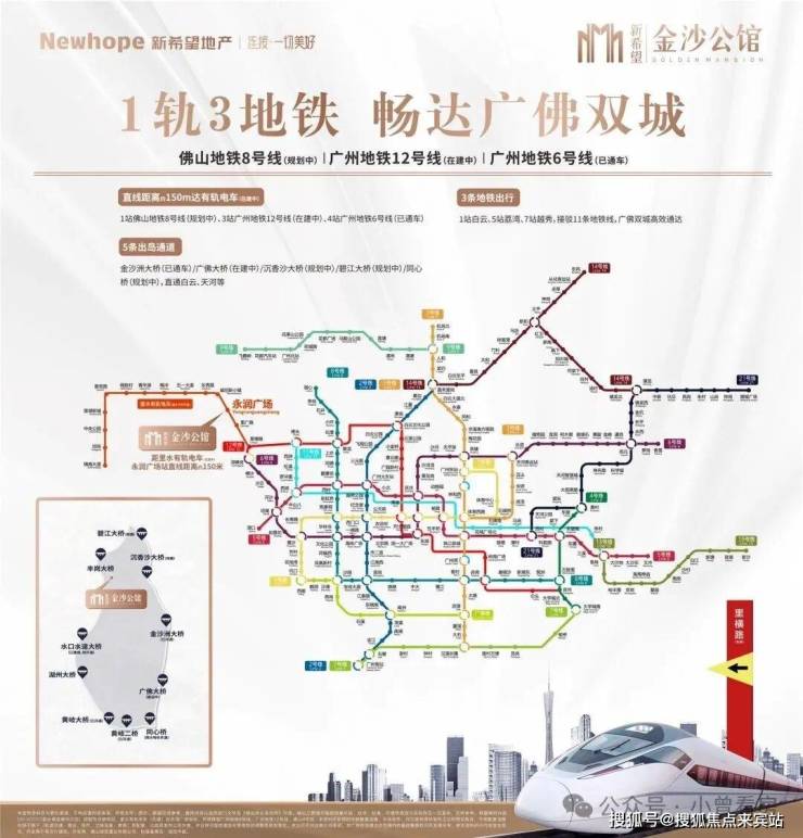 其中有轨电车永润广场站(在建中)就在金沙公馆楼下,无缝接驳6号线、12号线(建设中)、佛山8号线(规划中)。