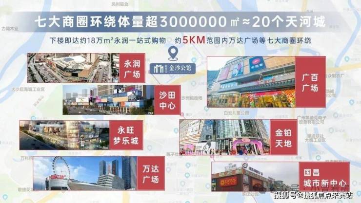 项目5km生活圈坐拥约200万方商业体,楼下即是18万方永润广场,约1.3km到沙田中心,约1.6km到广百广场,约4km到永旺梦乐城,约4.5km到金铂天地,约4.8km到万达广场,约5km到国昌广场,共计七大商圈,吃喝玩乐一站即享。
