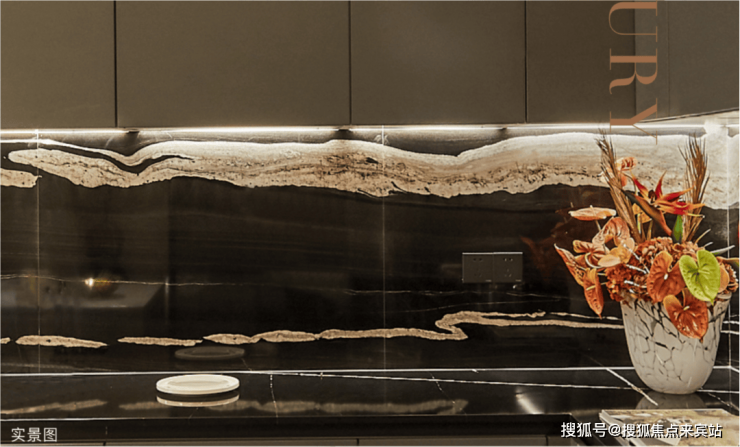贵雅美学元素的提取,奢石、奢品、大面积木材的应用。全球昂贵材料的巧妙应用是设计师们的基本功,只是「SCT·湾流」的设计师更执着于“魔鬼细节”。▽