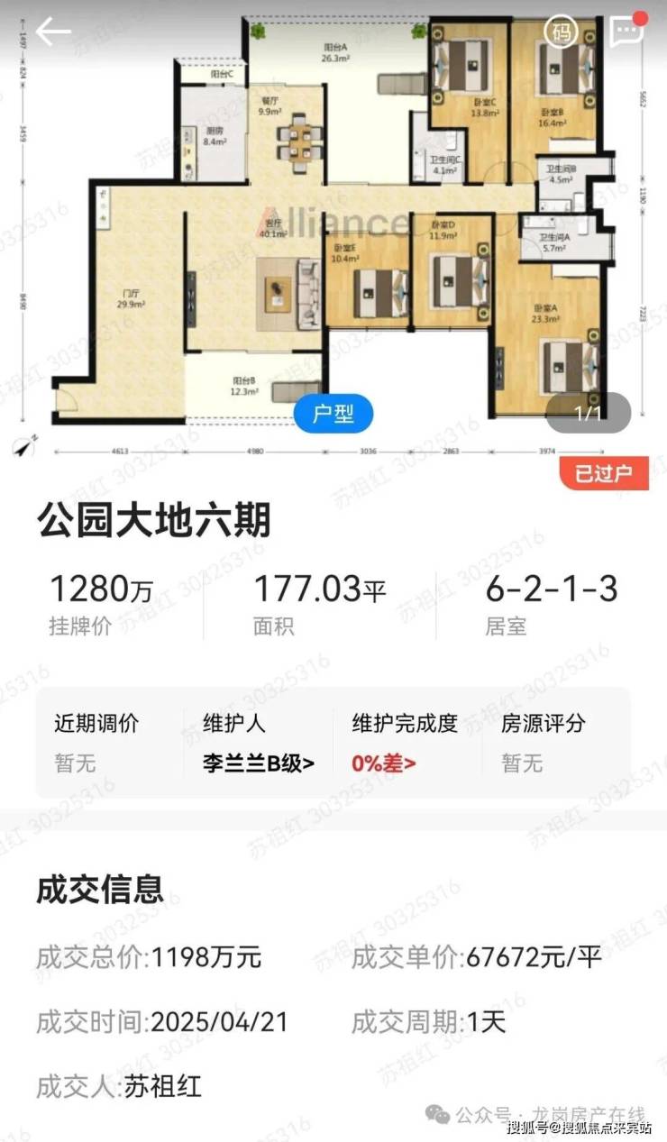 - 公园大地:2025年4月成交的177.03㎡六房总价1198万(单价67672元/㎡),同面积段房源近半年价格波动仅±2%,且成交周期1天。小区成交同期平均45天