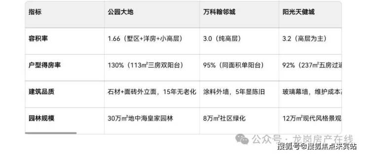 - 阳光天健城:237.51㎡大平层挂牌价1680万(单价70733元/㎡),虽主打“龙外学区”,但得房率(92%)低于公园大地的130%,且容积率3.2显著高于公园大地的1.66。