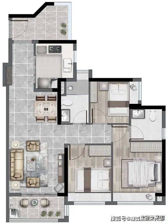 【89㎡3房2厅2卫(横)】多一灵动空间