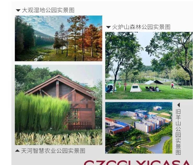 紧邻广州第一个海绵城市湿地公园—大观湿地公园、火炉山森林公园、天河智慧农业公园、旧羊山公园,鲜氧环绕,清新自然和咫尺繁华难得同享。