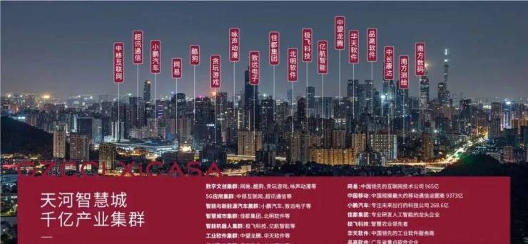 天河智慧城汇聚中国移动、网易、酷狗、小鹏汽车等3000多家科技企业、1000多家高新技术企业,构建八大产业集群,2023年总收入达3226亿元,引进20多万技术人才,“广州硅谷”孕育而生,成为湾区科创精英宜居宜业之地。