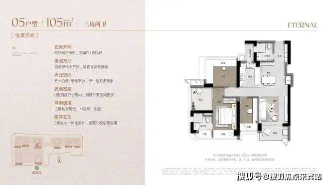 建面约105㎡三房轻奢范本