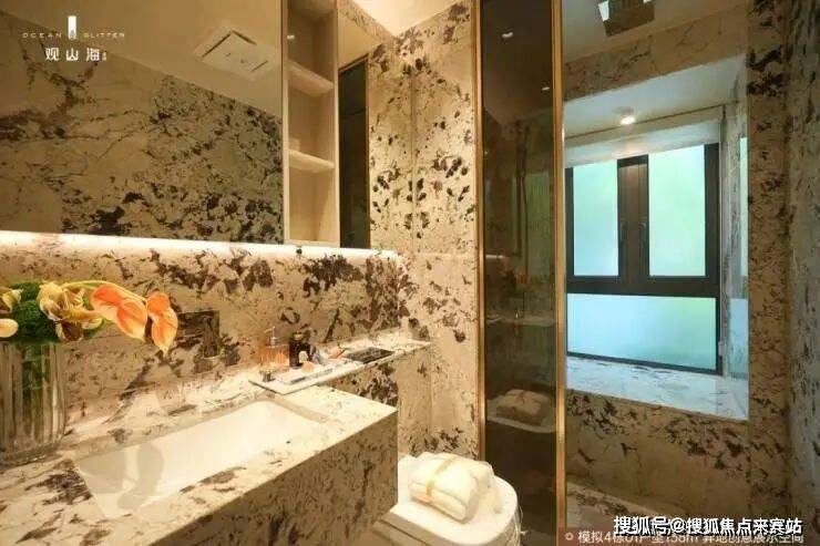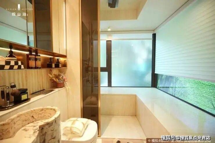 4栋01户型主卧采用U型玻璃仓飘窗设计,对比常规一字型飘窗,不仅通风对流,更有约270°三面环幕视野,园间林影尽收眼底,坐揽山色,卧拥星河。卫生间明卫设计,打造酒店级奢适休憩空间,尊崇感时刻相随。