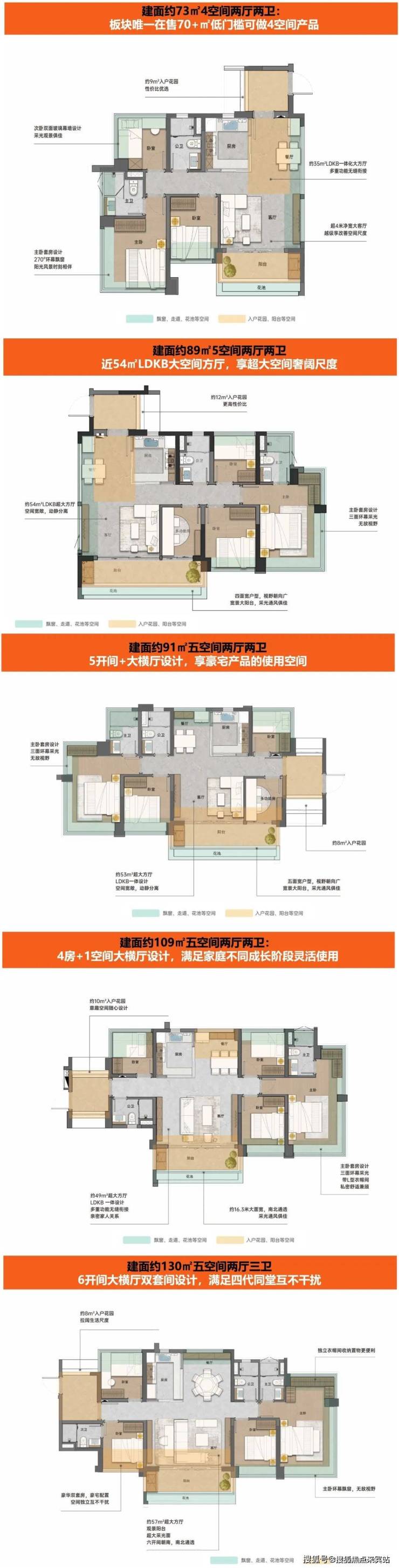 ✅ 建面约73-130㎡ 全南向4/5空间 两厅两卫,高拓展、高赠送,全系入户花园配置