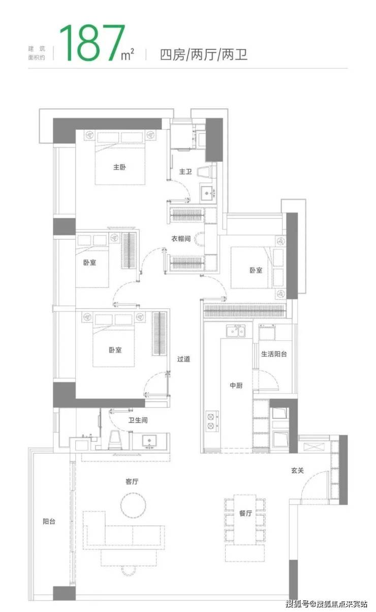 ●户型设计:主力建面约110-187m2三至四房◇全屋精装交付(约6000元/m2标准),独立玄关、主卧套房、多面采光等细节凸显人性化。