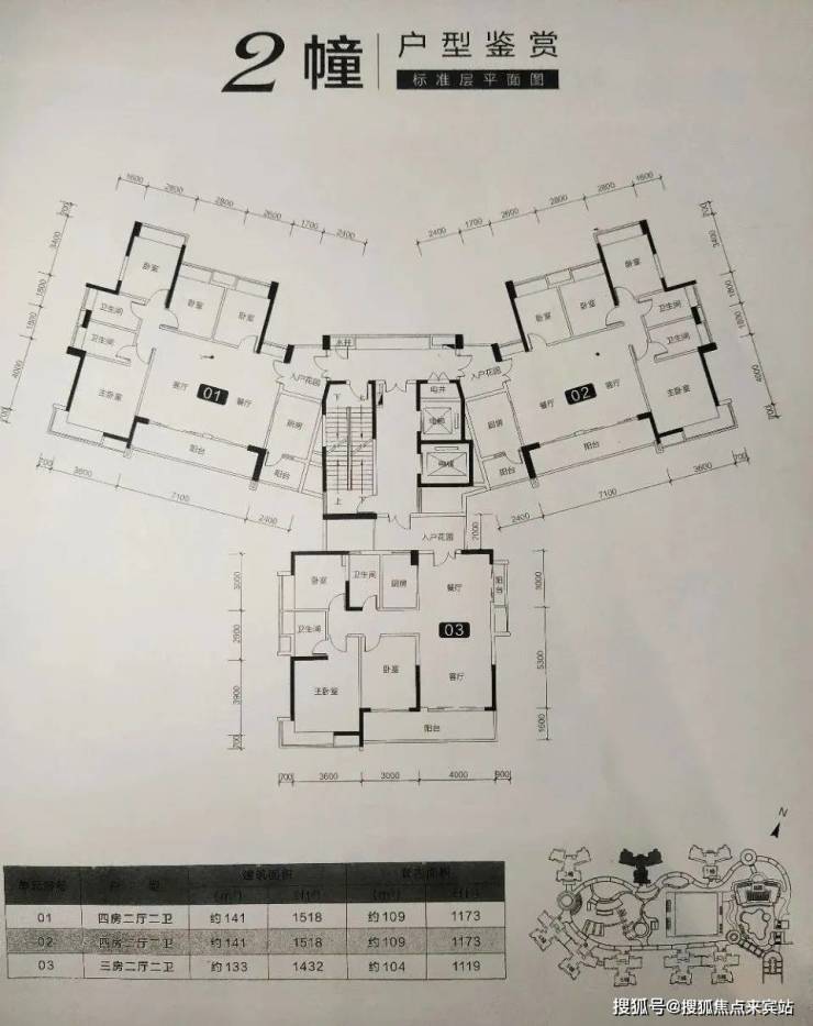 项目楼王位置,2梯3户,品字设计户户朝南