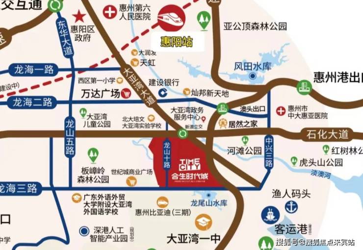 项目门口是龙山十路,目前这条路还没完全通车,通车后去到惠阳站(高铁站)仅4公里,惠阳站目前去到深圳北站只要30分钟,后期深汕高铁开通后去到深圳南山只要30多分钟,门口为大亚湾的主干道石化大道,到深圳地界约8.6公里,开车去到深圳坪山只要约15分钟。