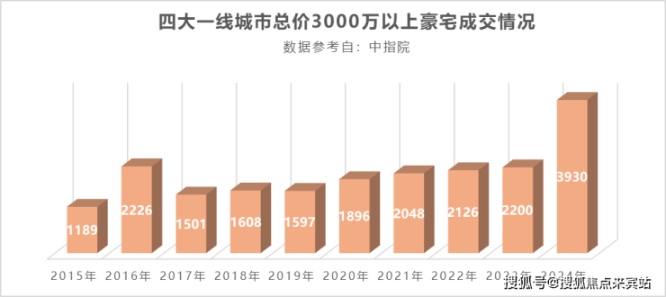 如果看2024年数据,会发现一线城市总价3000万以上的豪宅成交了3930套,较2023年的2200套几乎翻倍。