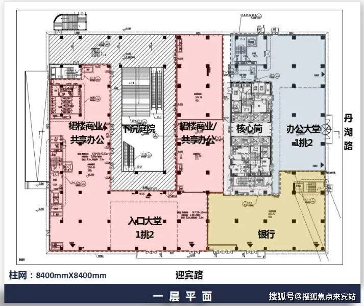 独特的下沉式庭院,商业配套/轻重餐饮、超市、美食档口多业态组合大布局开间。【项目一层】