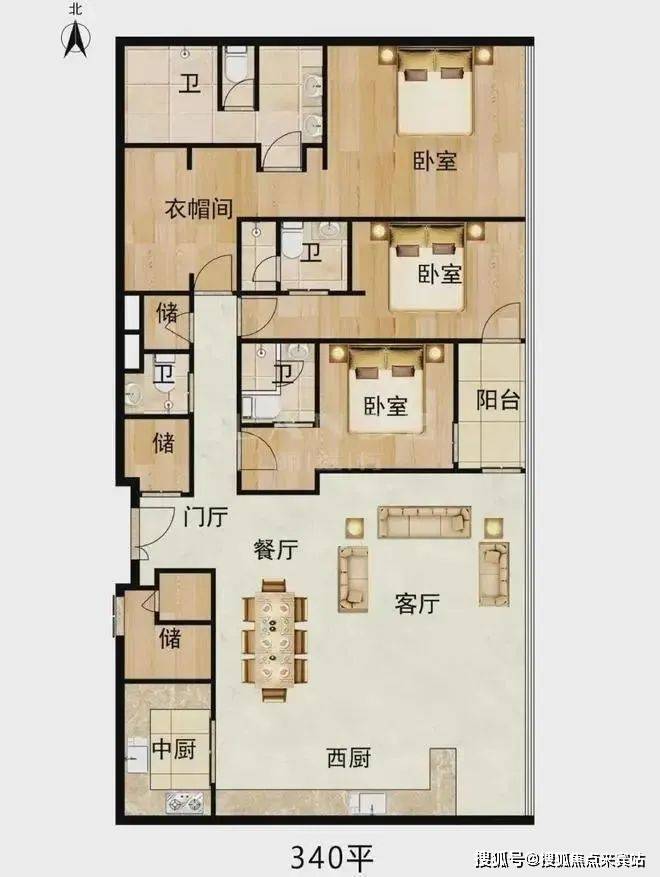 340平三套房 3套房,套房设计,带多功能藏宝阁。