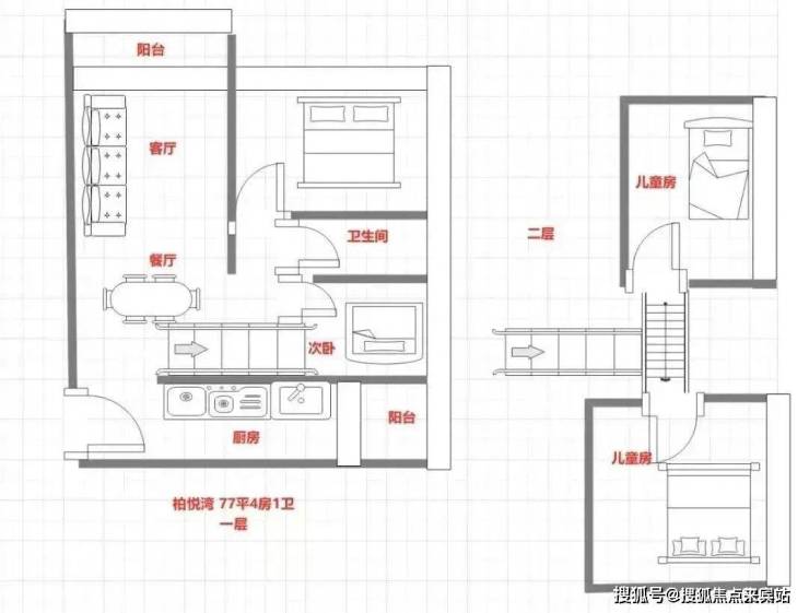 77㎡4房1卫一层4套端头位置东北,西北,东南西南,双面采光景观4面景观