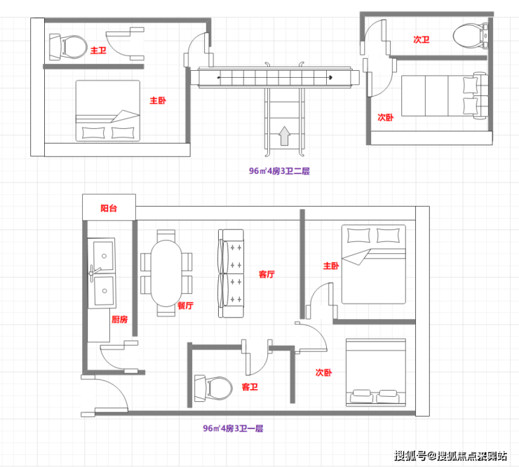 96㎡4房3卫一层2套双面采光,西南前海湾+大小南山,东南深圳湾+大小南山,东北深圳湾+城市景观