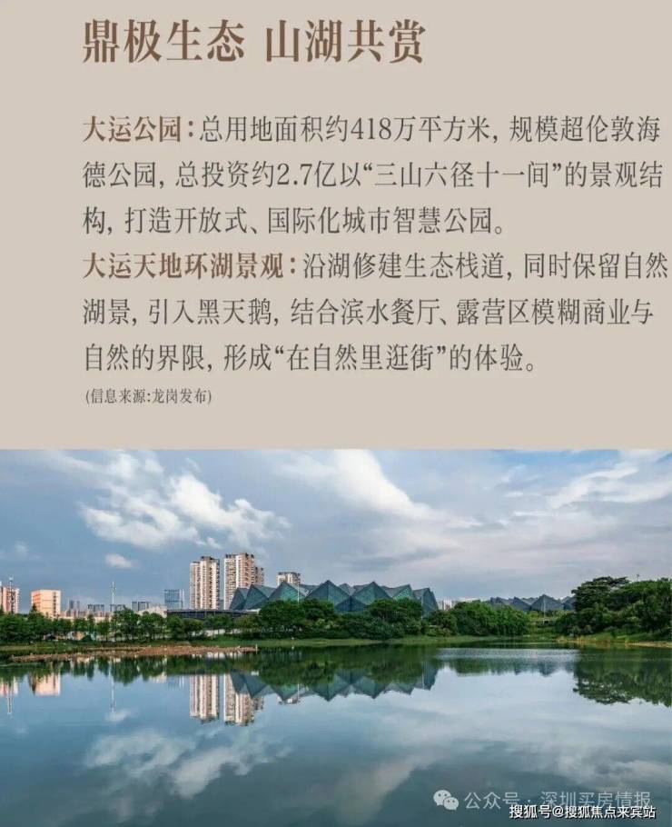 坐享大运公园(约418万㎡)、龙城公园(约189万㎡),环境优美,绿化率超50%,绿化率是福田中心的5倍、前海中心的4倍,是深圳首个“国家级生态示范区”。