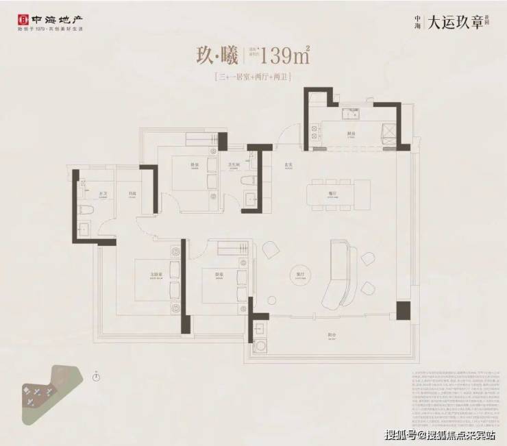 139-143㎡ 双景观四房(3梯4户)这是项目的“中坚力量”,也是改善家庭的首选。