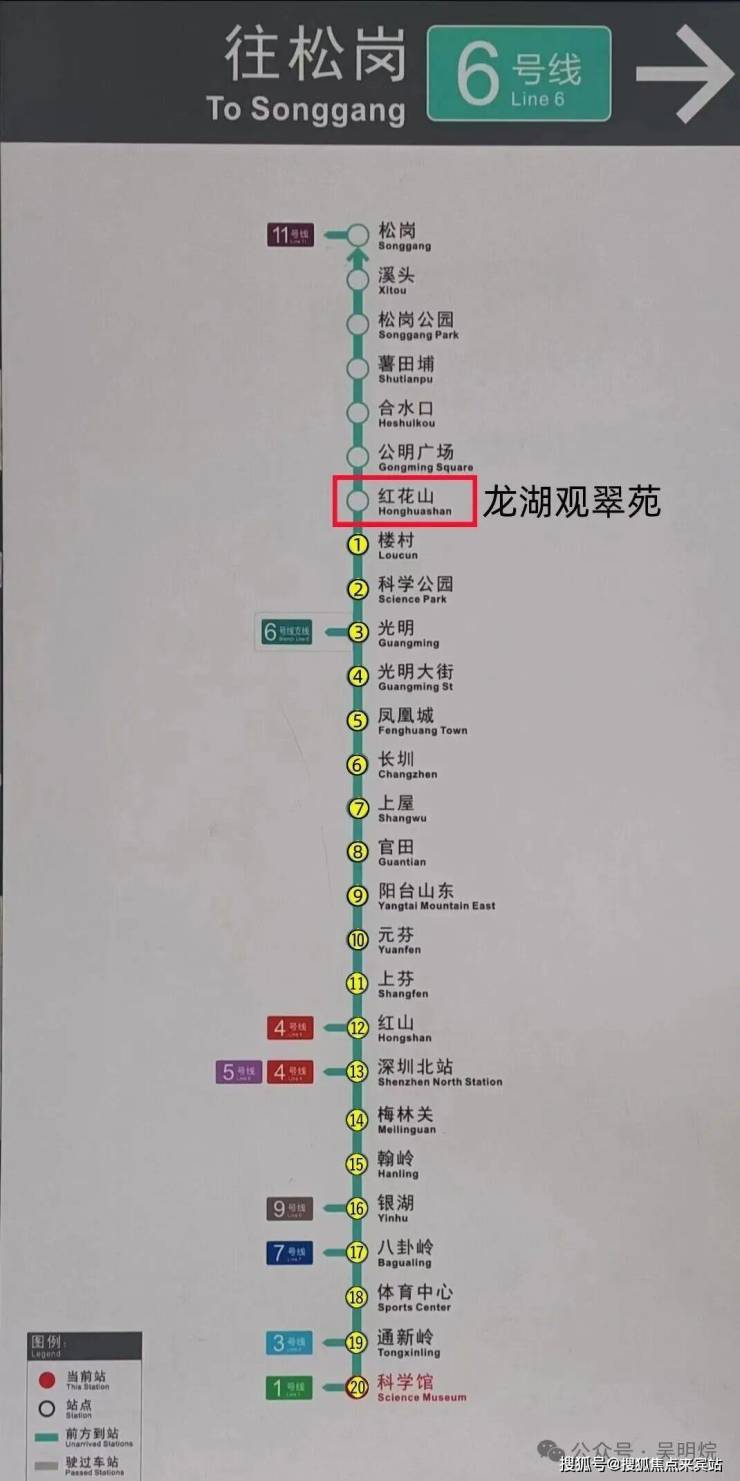 现有的深圳地铁6号线(已通车),我们走路约398米到红花山站,乘坐地铁地铁2站可达科学公园,4站光明大街,5站凤凰城,12站红山,13站深圳北站,14站梅林关,17站八卦岭,18站体育中心,20站福田科学馆;