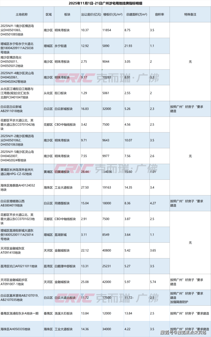 伴随三位新成员的加入,克而瑞数据监测显示,11月截至21日,广州涉宅用地供应20宗,累计起拍总价254.22亿元。