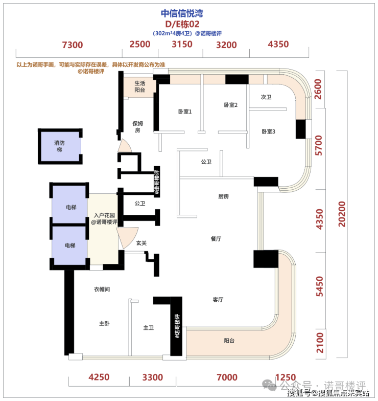 本次预计推出的E栋302m²42套房源,定价预计在20w/m²左右,高低层、户型之间的差价会比较大,由于本次推出的实在太少,属于是僧多粥少,基本能选到心仪的楼层机会非常小,不过我们还是简单聊聊之间的区别