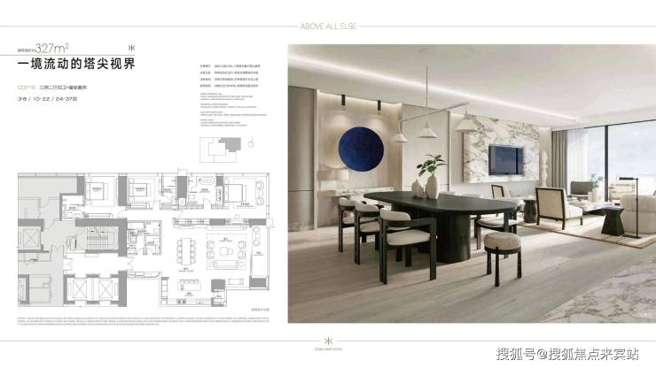 产品设计上,据了解,多为面积约300-1000㎡的宽境大平层产品,首批推出T3栋约123户,低区约304-327-402㎡,高区约400-570-1000㎡,层高约3.6-4.5米,均通燃气且配备超大阳台,部分户型采用 270° 环幕视野设计。
