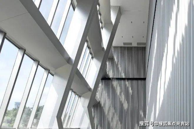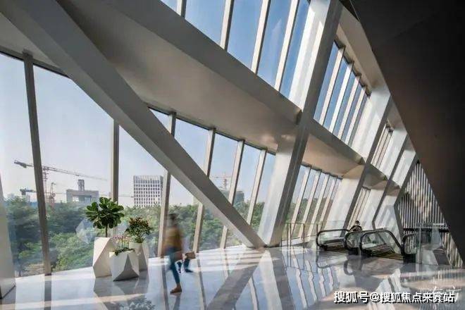 乘坐扶梯前往汉京中心的办公区大堂,随着扶梯上升,玻璃幕墙外深南大道和深圳大学的风景逐渐浮现眼前。