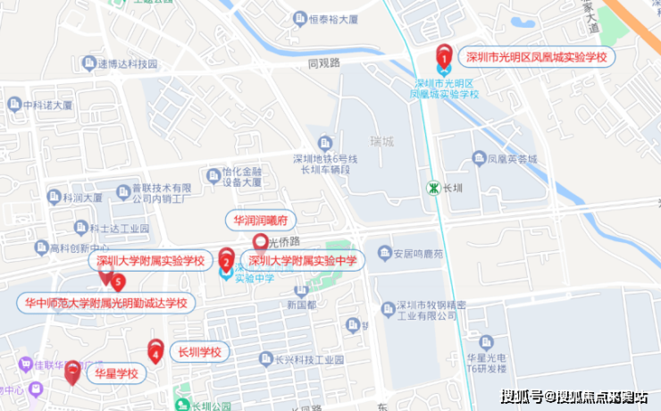 项目自身配建12班幼儿园,项目西侧毗邻深大附属实验中心、东侧毗邻一块九年制教育用地,未来在自家门口即可满足从幼儿园到高中的学业。除此之外,项目1.5公里范围内还分布有华中师大附属勤诚达学校、长圳学校、深圳中学光明分校(在建),凤凰城实验学校。项目周边目前是光明教育资源最为丰富的一个区域,像深实验、华中师大等名校,基本都是可以积分入读的。