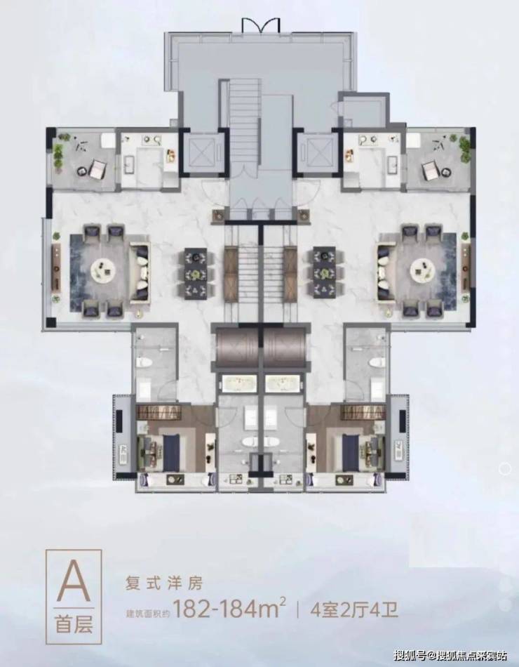 一期首批推售建筑面积约110平方米3房2厅2卫、145-147平方米4房2厅3卫的小高层,174-176平方米4房2厅3卫、182-184平方米4房2厅4卫的复式洋房。