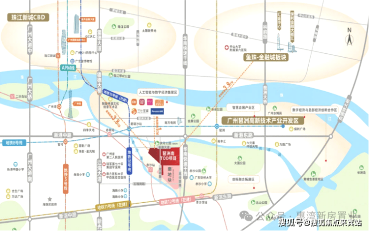 地铁:广州地铁8号线磨碟沙站(直线约700米)、18号线(串联珠城与南沙)、在建12号线赤沙站(二期地块内),形成“三轨交汇”。