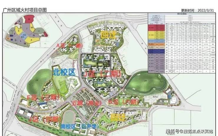 一期A区,二期J区,三期F区,四期G区,六期N区,五期是花厅坊古村落商业街,H区、M区、P区、Q区为回迁房