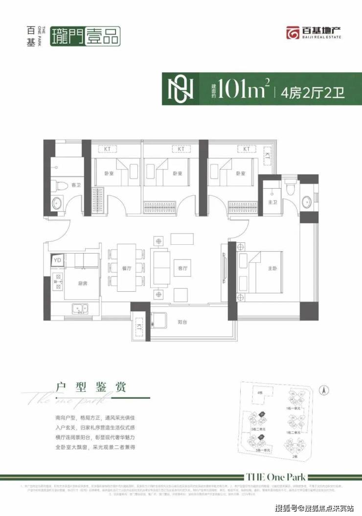 101㎡的4房2厅2卫,设计的是横厅南北通透格局,进门入户玄关,LDKB一体化设计,U型厨房,卫生间干湿分离,阳台主朝东南向。
