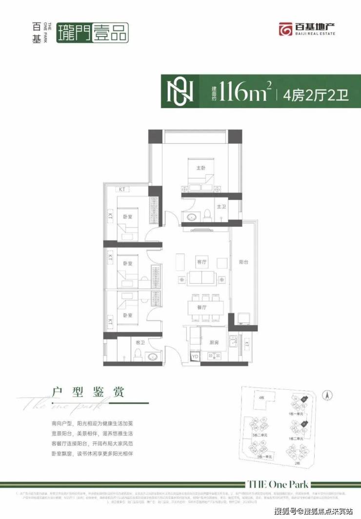 116㎡的4房2厅2卫,设计的是横厅南北通透格局,进门入户玄关,LDKB一体化设计,主卧南北通透,L型厨房,卫生间干湿分离,阳台主朝东南向。