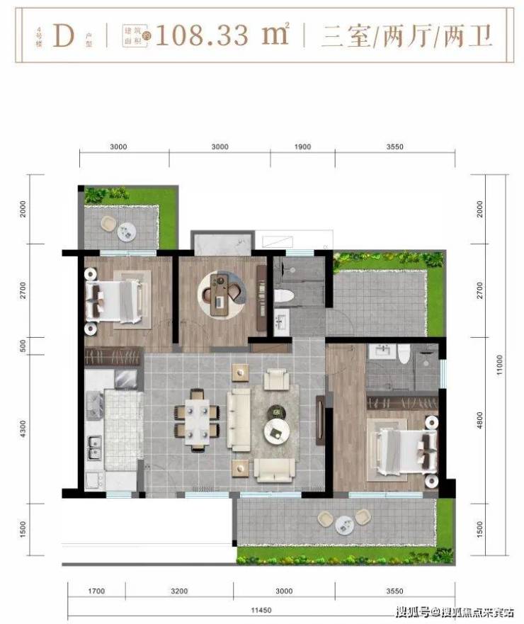 ✨4楼D户型约108㎡三房两厅两卫