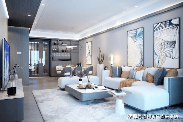 约9米进深的敞开式餐客厅一体化设计,通透空间让山语海风穿堂入户;