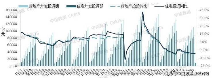 图:2022年以来全国房地产开发投资额累计和单月同比增速