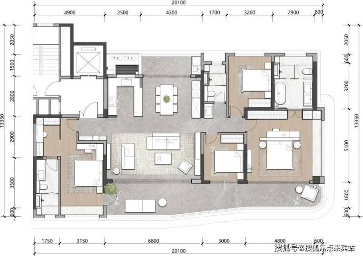 即使是最小的105㎡户型,也充分体现了设计师对度假豪宅家庭关系场的把握。搜建筑