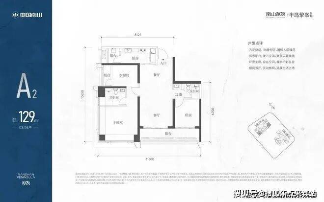 A3也是两条腿,分别是1-1栋04/05,主朝向是东南向,双龙抱珠格局。客厅拥有超大观景阳台,缺点是公卫是个暗卫,小次卧和主卫也对天井外走廊,采光不足。