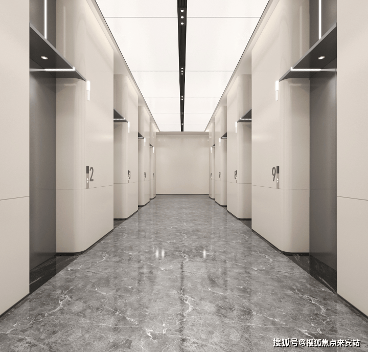 开敞式电梯厅设计,全天持续采光通风,安心健康绿色办公,会呼吸的电梯厅!