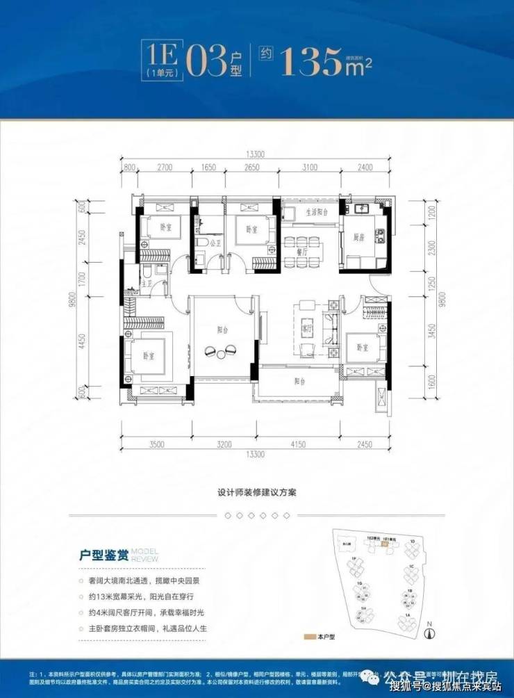 首推1栋B/G/H/E座,共333套,面积约81㎡3房2卫、89-109㎡4房2卫、135m²5房2卫,