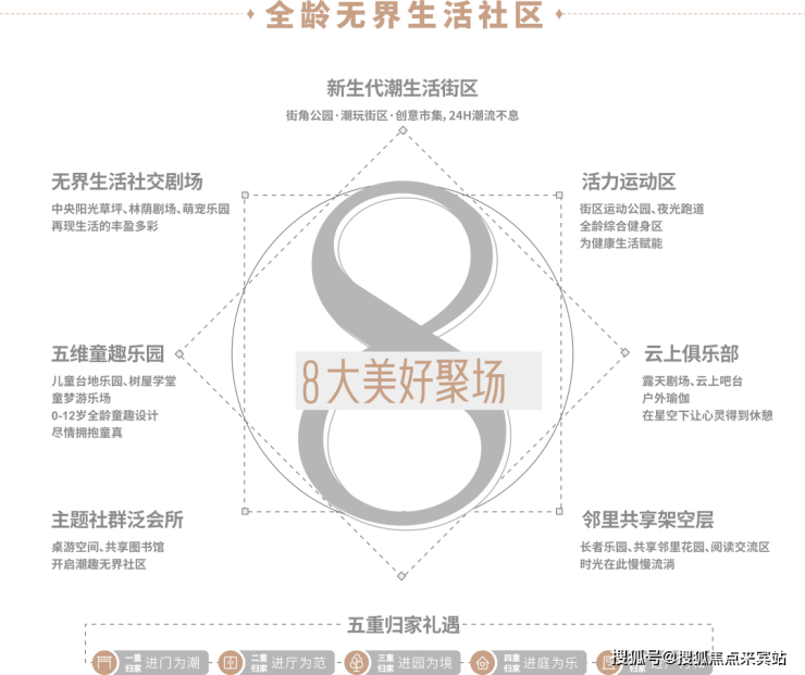 以“生机律动 活力无界”为理念精心设计园林“8大美好聚场”——新生代潮生活街区、五重归家礼遇、无界生活社交剧场、五维童趣乐园、主题社群泛会所、运动活力区、云上俱乐部、邻里共享架空层等多元化社交空间,定制新生代的美好家园。