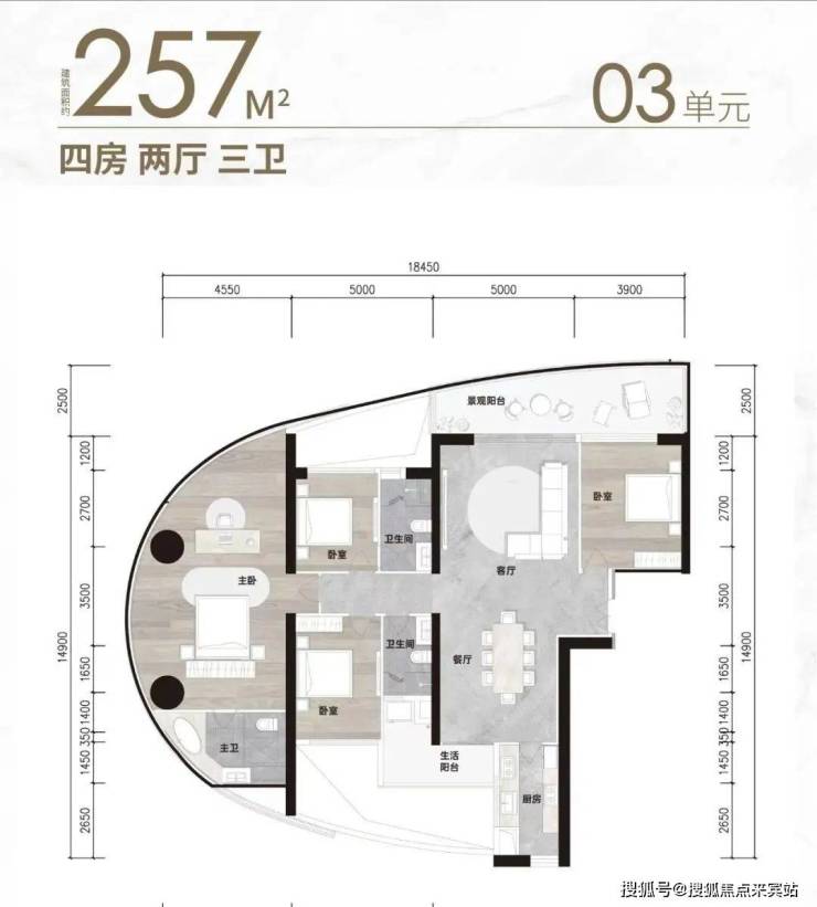现推售最后一栋超高层住宅A5(51层高),每层约620㎡,户型包括176㎡-187㎡-204㎡-257㎡三至四房大平层江景住宅,符合新政不限购;大部分单套住宅总价介于1300-2000万元,自住投资首选。