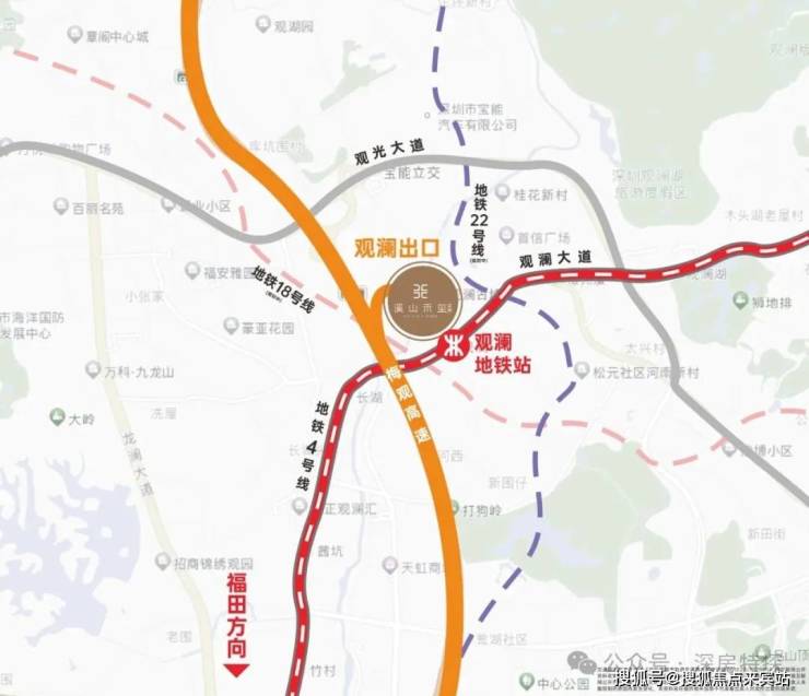 项目距离4号地铁线“长湖站”约1.1公里,周边18号线/22号线(在建中),直达北站枢纽、福田CBD;紧邻梅观高速、龙华大道、观澜大道,快速通达全城。