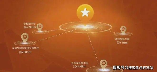 深圳外国语学校高中园光明高中园,直线距离约4.4公里,内设致远、博雅、弘知、理工四所高中,办学规模分别为36班、54班、60班、30班,提供9000个学位。